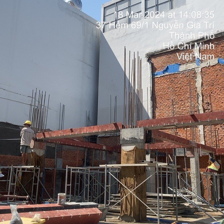 Công tác đổ bê tông cột tầng trệt và đóng coppha tầng lững công trình 69 Nguyễn Gia Trí, Bình Thạnh!