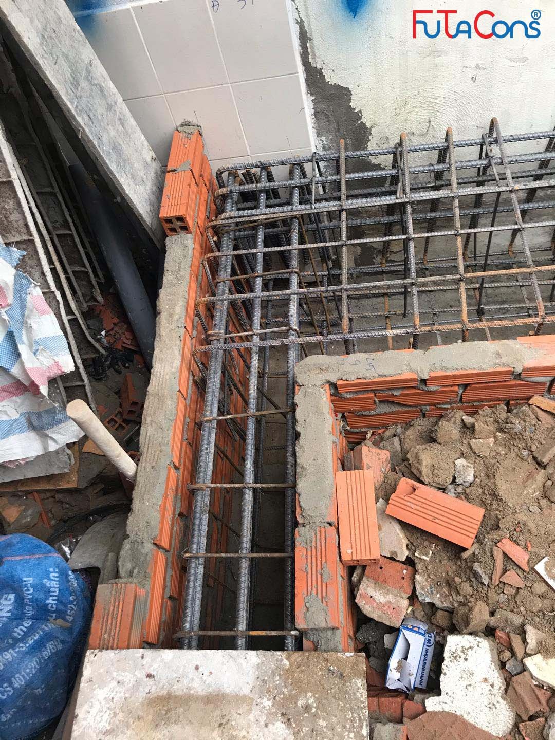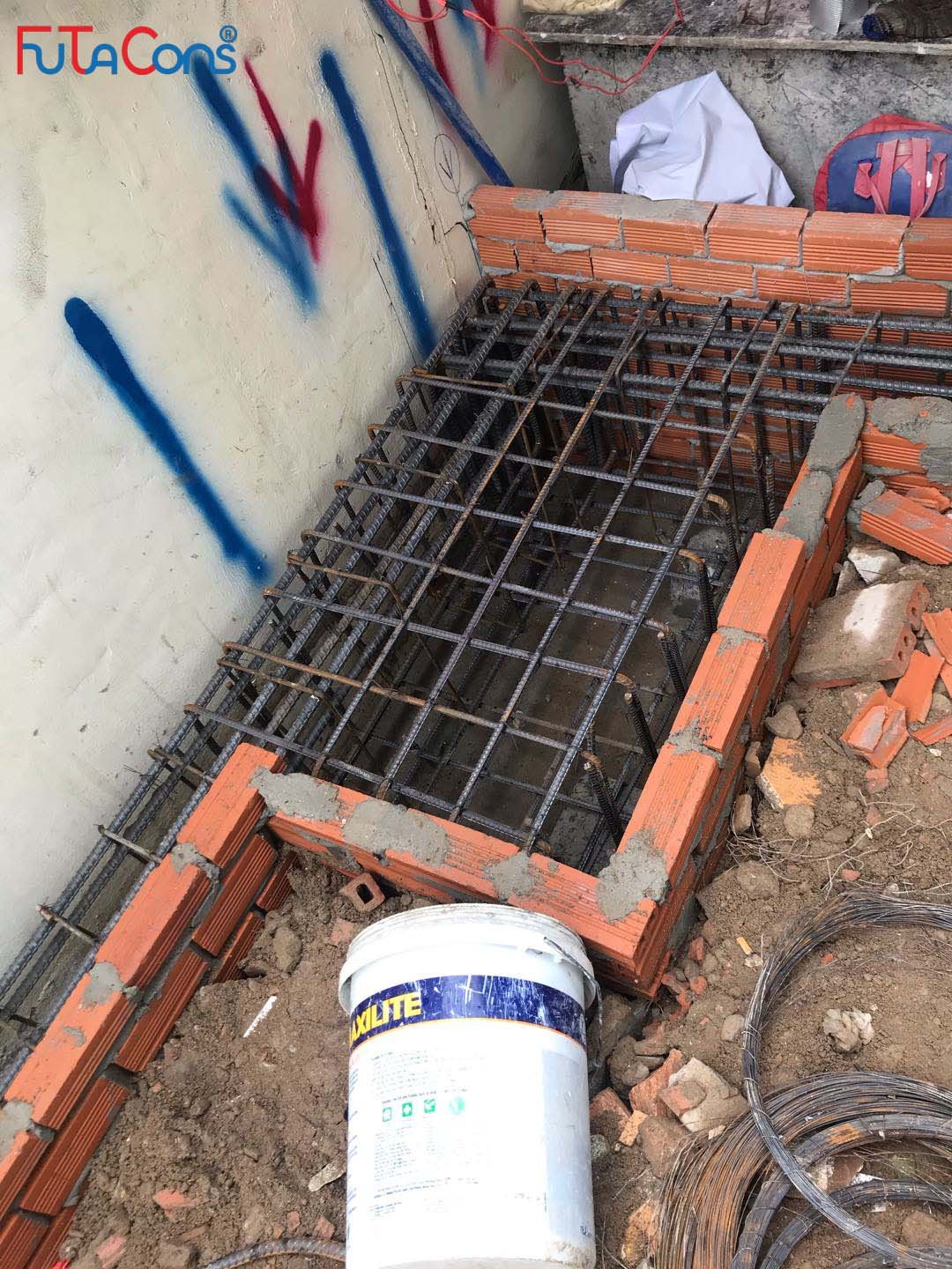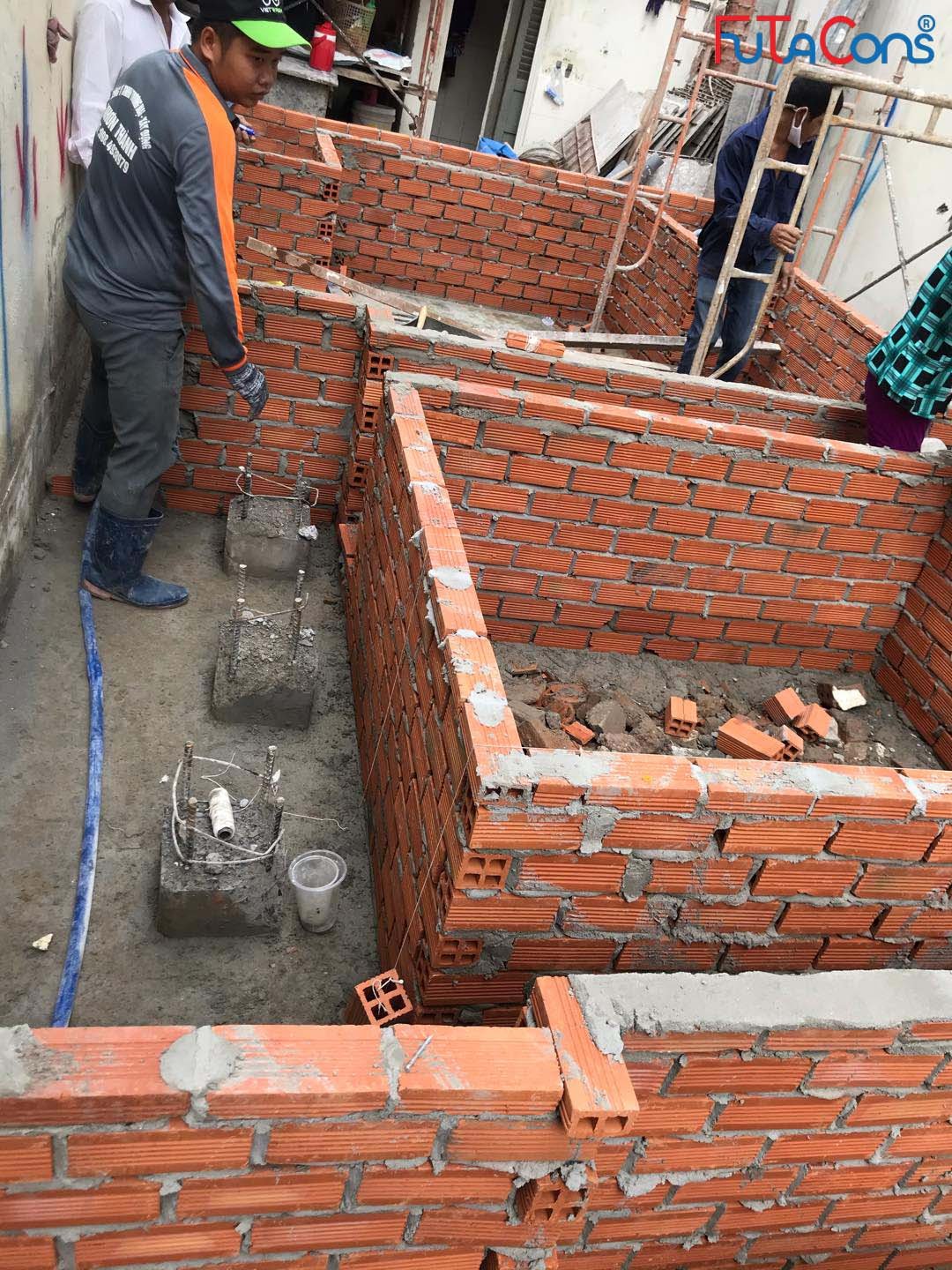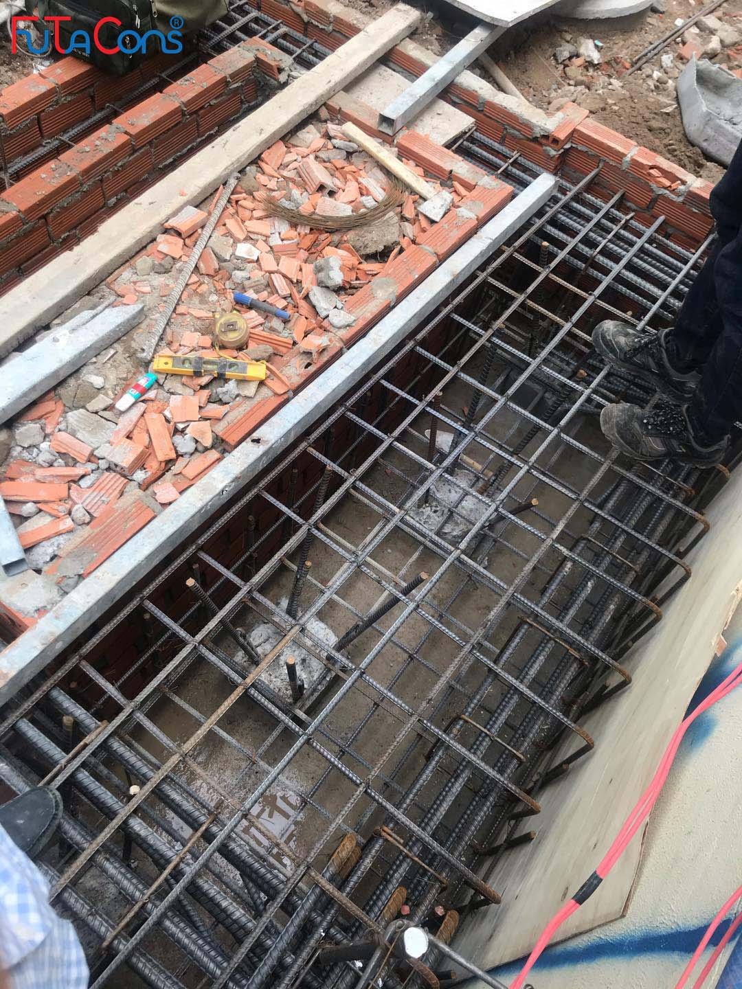 Công tác xây hố móng, giằng móng, lắp đặt thép cho công việc đổ bê tông đang được tiến hành. Team FUTACONS ghi nhận một số hình ảnh tại công trình: