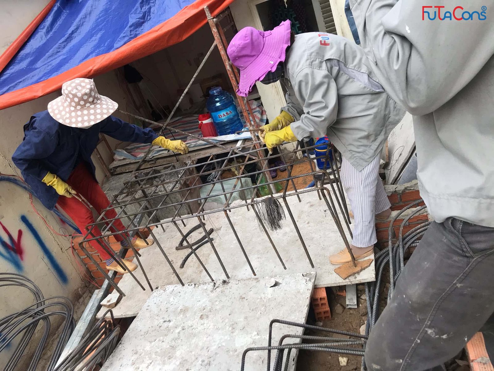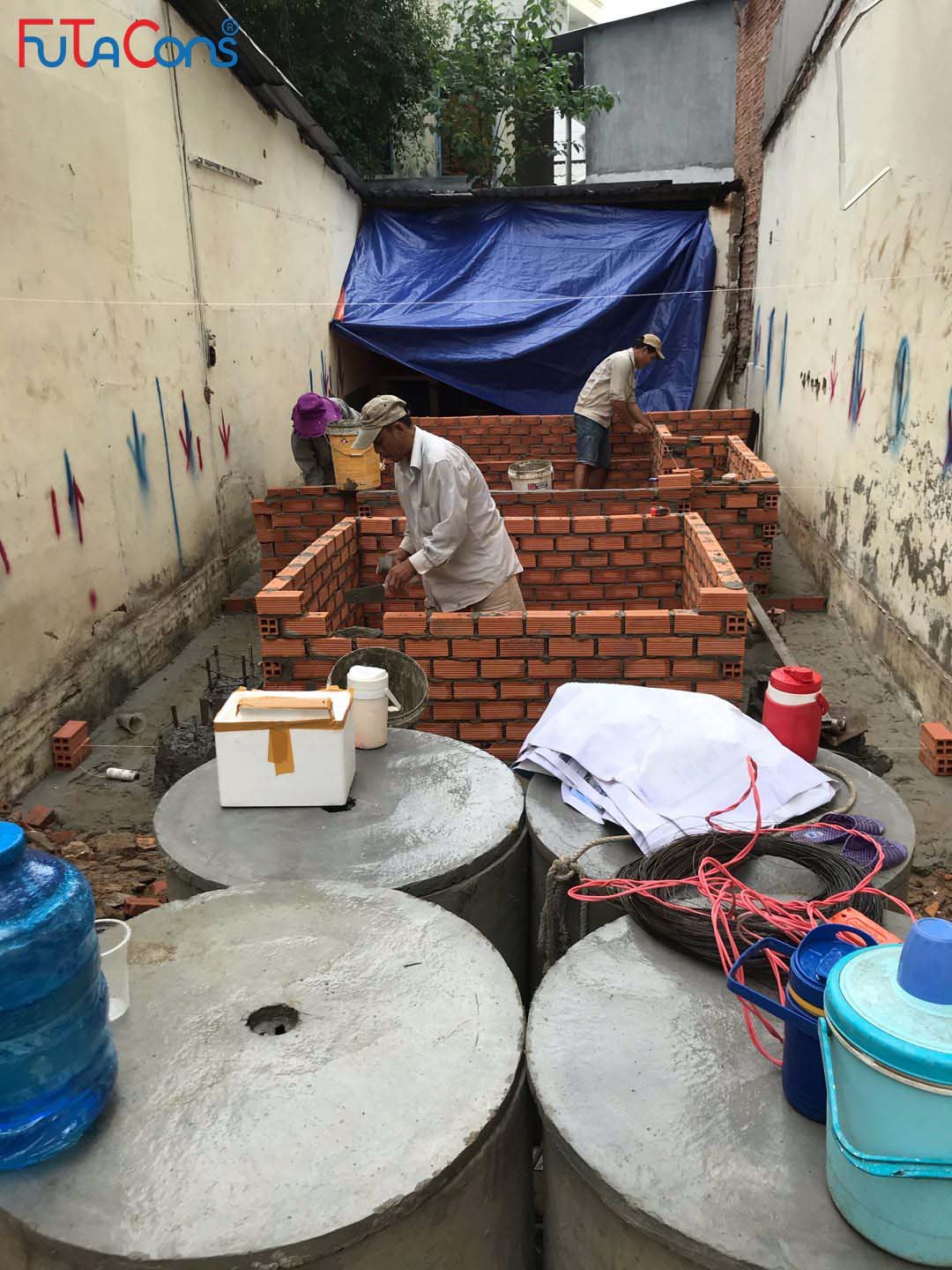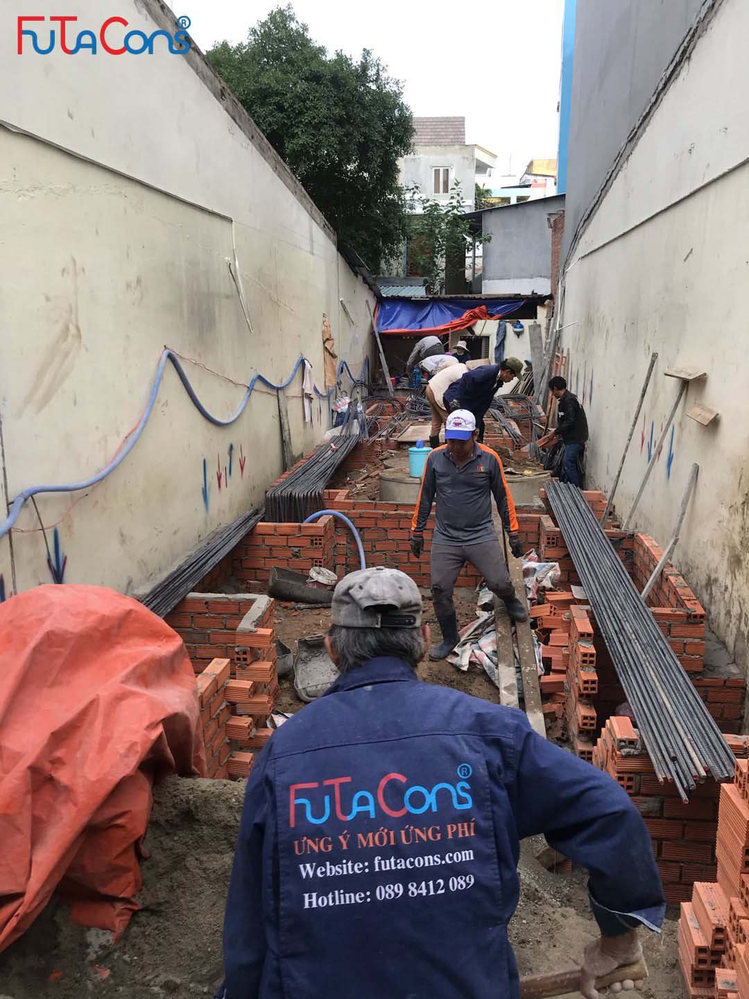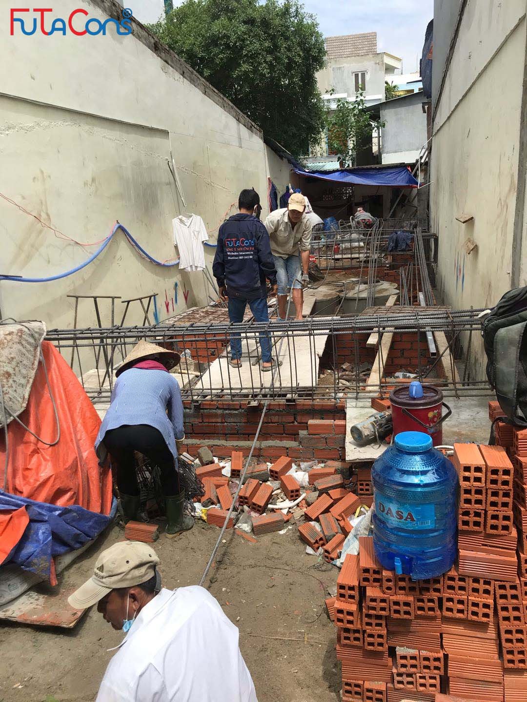 Công tác xây hố móng, giằng móng, lắp đặt thép cho công việc đổ bê tông đang được tiến hành. Team FUTACONS ghi nhận một số hình ảnh tại công trình: